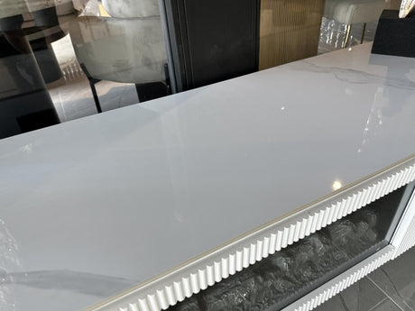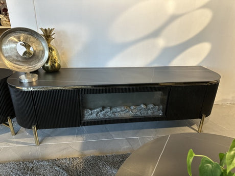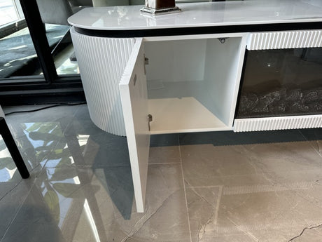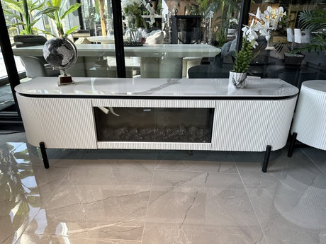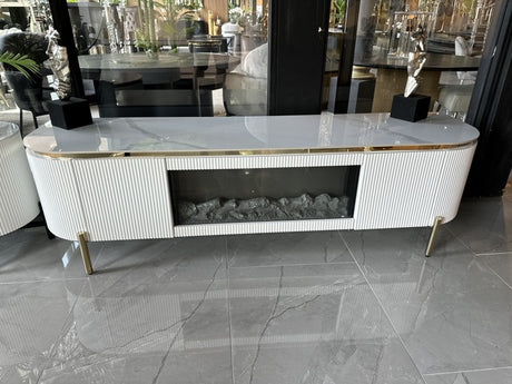 TV Schrank weiß mit Kamin, Fernsehschrank mit Elektrokamin weiß, Lowboard weiß, Länge 200 cm