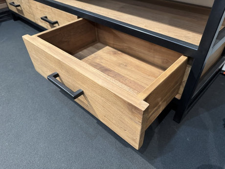 Fernseheschrank Teakholz Naturholz, TV Schrank Holz mit Schubladen, Breite 280 cm
