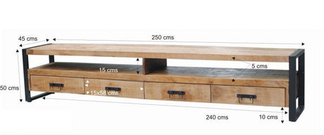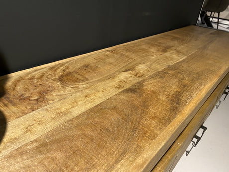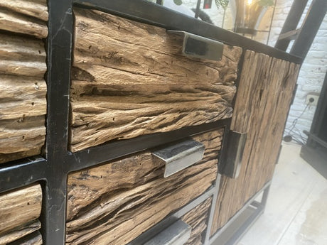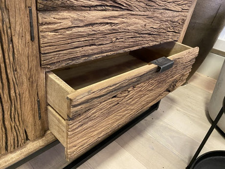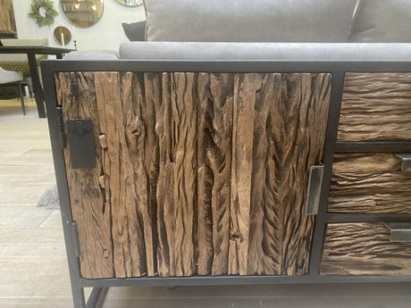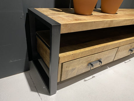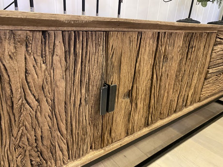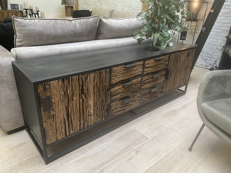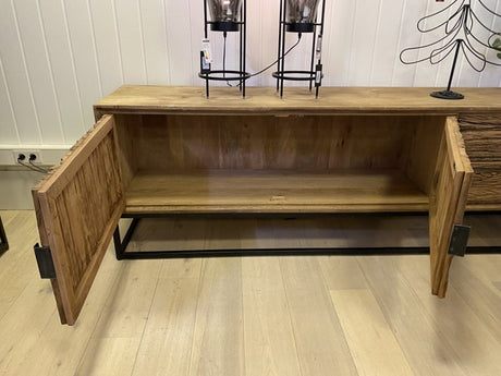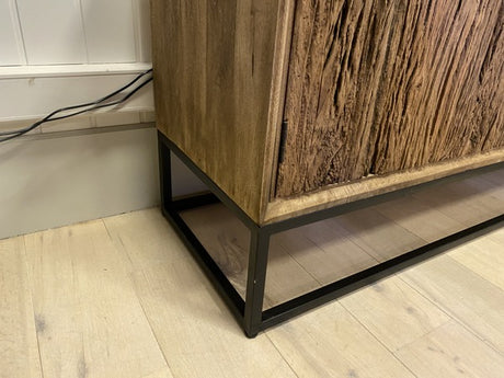 TV Schrank Altholz braun, Fernsehschrank schwarz Metall, Sideboard Industriedesign, Breite 240 cm