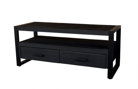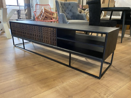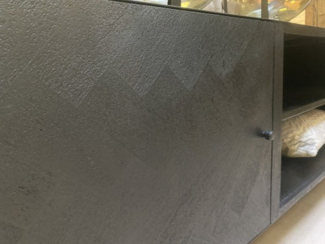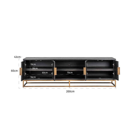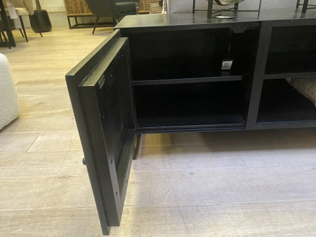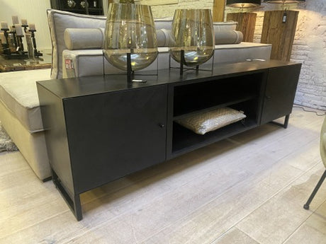 TV Schrank schwarz, Lowboard schwarz, Sideboard schwarz Metall, Breite 200 cm