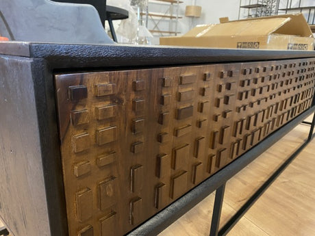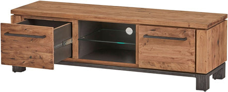 TV Schrank Massivholz braun, Fernsehschrank Metall Holz, TV Board Holz, Breite 170 cm