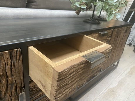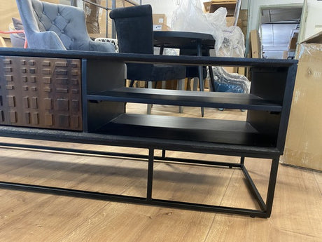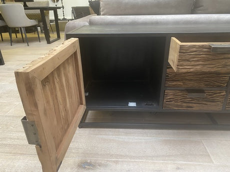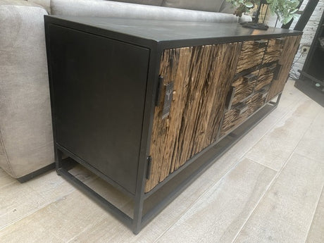 TV Schrank Altholz braun, Fernsehschrank schwarz Metall, Breite 150 cm