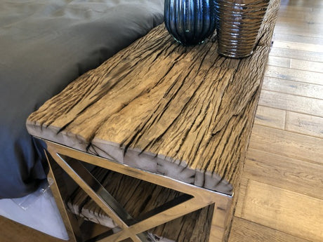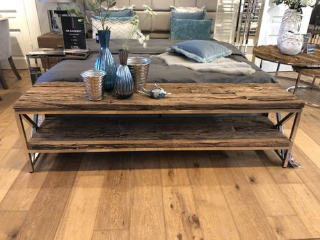 TV Regal Silber-Gestell, Lowboard Altholz Silber-Gestell, Breite 140 cm