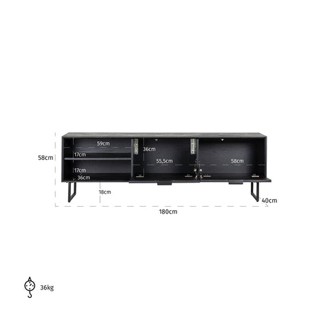 TV Schrank schwarz-braun, Fernsehschrank schwarz, Breite 175 cm