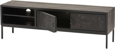 TV Schrank Ornament schwarz, Fernsehschrank schwarz, TV Schrank schwarz, Breite 160 cm