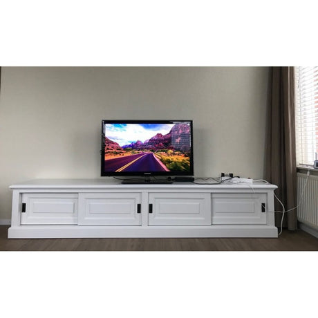 TV Schrank weiß, Lowboard weiß mit Schiebetüren Fernsehschrank weiß Landhaus, Breite 200 cm