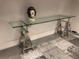 Konsole verchromt Glasplatte, Sideboard verchromt Metall und Glas, Wandtisch Silber mit Glas, Breite 200 cm ist auf Lager und wird versandt, sobald es wieder verfügbar ist
