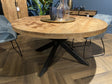 Tisch rund Industriedesign, runder Esstisch Holz Tischplatte, Tisch Metallgestell schwarz, Durchmesser 140 cm