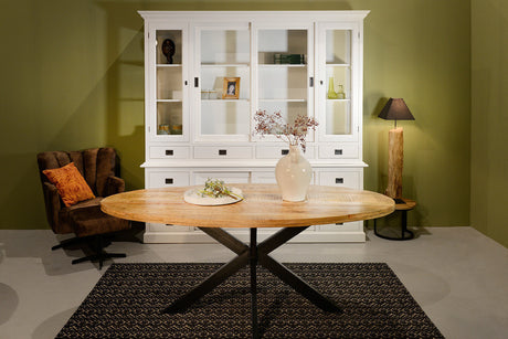 Esstisch oval Holz Metall, Tisch oval Massivholz Tischplatte, breite 160 cm