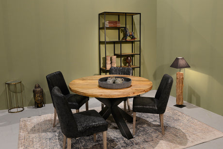 Esstisch rund Holz Metall, Tisch rund Massivholz Tischplatte, Durchmesser 130 cm