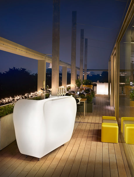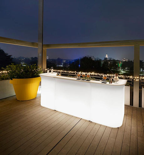 J-Bar Eck-Element weiß Kunststoff, outdoor Bartresen mit Beleuchtung, Bar outdoor, Breite 90 cm