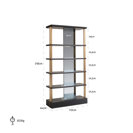 Regal schwarz-Gold, Bücherregal Gold-schwarz, Breite 112 cm