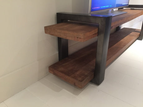 TV Regal grau-Naturholz, Lowboard Industrie, Fernsehschrank Industriedesign grau, Breite 200 cm