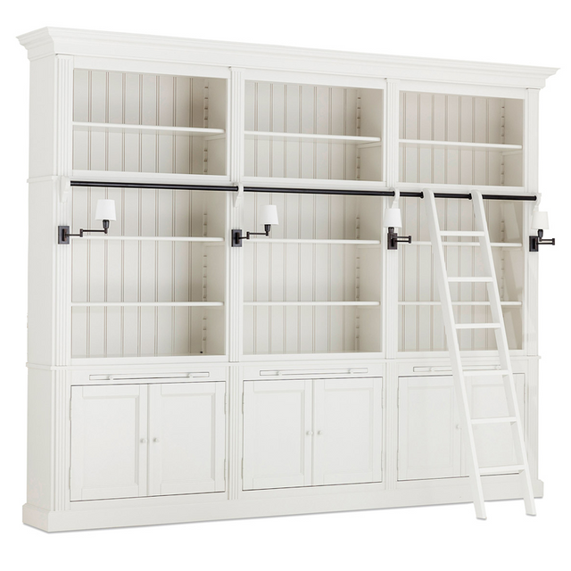 Bücherschrank weiß , Bücherschrank Landhausstil weiß, Schrank mit Beleuchtung Landhaus, Breite 300 cm