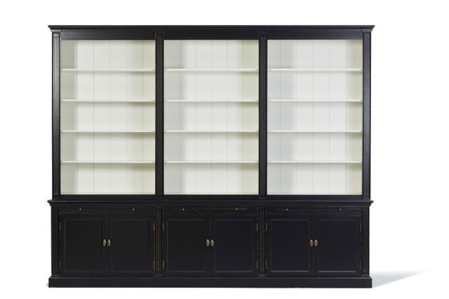 Bücherschrank schwarz Landhausstil, Schrank schwarz Landhaus, Breite 300 cm