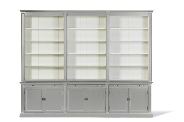 Bücherschrank grau Landhausstil, Schrank grau, Breite 300 cm