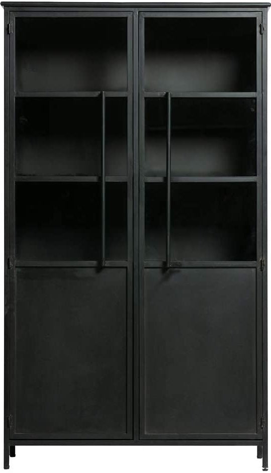 Metallschrank schwarz, Schrank Metall schwarz, Vitrine Metall-Glas schwarz, Breite 99 cm