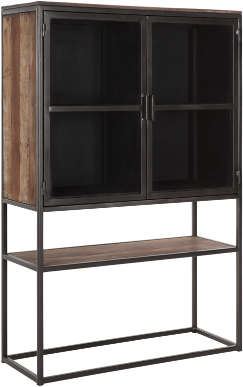 Vitrine braun-schwarz, Bücherschrank schwarz, Aktenschrank schwarz, Regal Industriedesign, Breite 90 cm