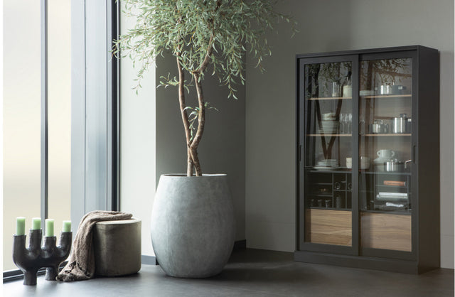 Vitrine schwarz, Geschirrschrank schwarz, Wohnzimmerschrank schwarz, Breite 125 cm