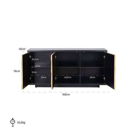 Sideboard Gold schwarz, Anrichte schwarz Gold, Breite 160 cm