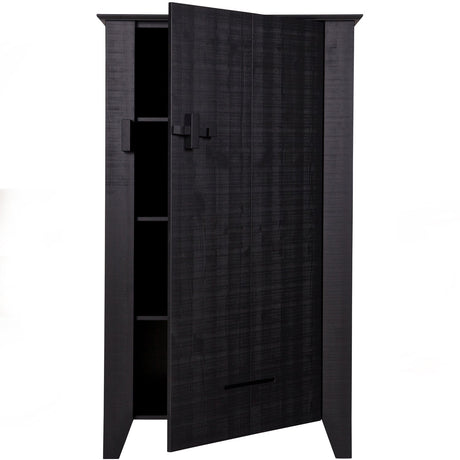 Schrank schwarz Massivholz, Mehrzweckschrank schwarz, Breite 85 cm