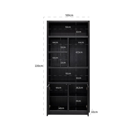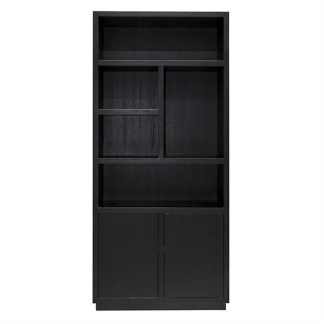 Bücherschrank Eiche, Schrank Eichenholz/ Schwarz, Breite 220 cm