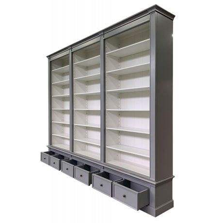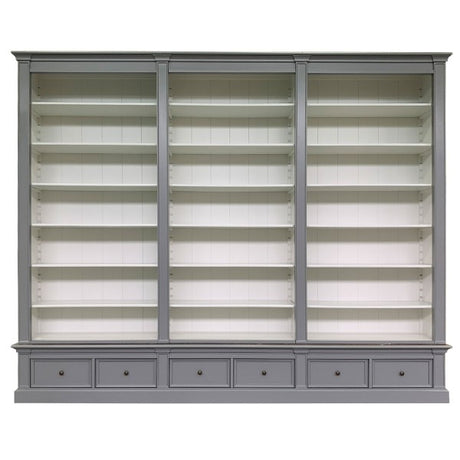 Bücherschrank grau Landhaus , Bücherschrank Landhaus, Schrank mit Schubladen, Breite 300 cm