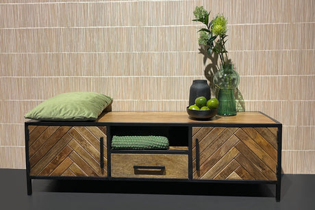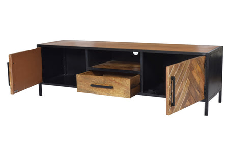 TV Schrank Industriedesign, Fernsehschrank Metall-Holz, Breite 150 cm
