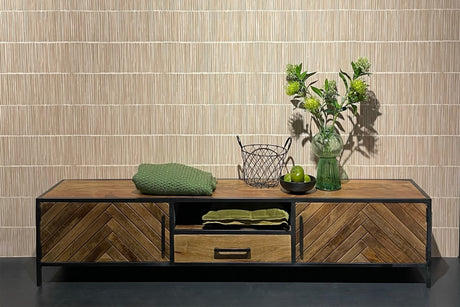 TV Regal Metall-Holz, Fernsehschrank Industriedesign Metall, Breite 200 cm