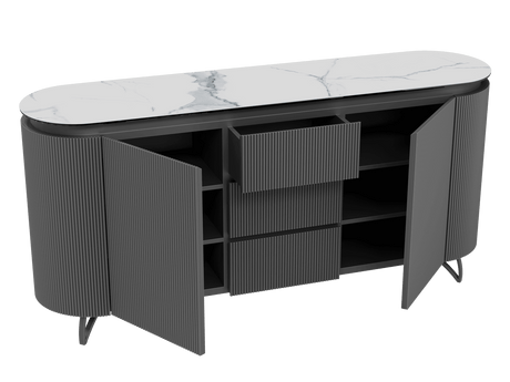 Normaler Preis €1.565,00GrundpreisSideboard weiß Marmoroptik, Sideboard mit Schubladen Keramik, ovale Anrichte Keramik, Breite 170 cm