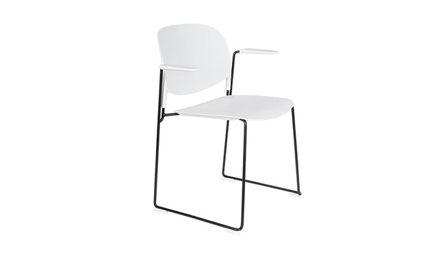 Stuhl weiß, Stuhlbeine schwarz, mit Armlehne