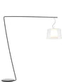 Design-Stehleuchte mit Sockel aus Edelstahl weiß oder schwarz lackiert; großer doppelter Lampenschirm. Fußschalter. Der Doppelschirm besteht aus zwei Lampenschirmen die ineinnander gehen. Der innere Schirm ist immer in Farbe weiß gehalten. Den Außenschirm kann man in vier Farben wählen. Die Bauart und Farbe der Lampenschirme, siehe Zusatzbild.