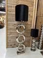 Stehlampe Silber Metall, Stehleuchte Metall-Silber, Stehlampe mit Lampenschirm schwarz, Höhe ca. 185 cm