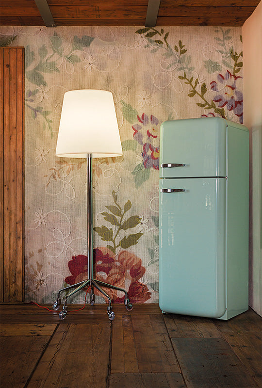 Stehleuchte weiß auf Rollen, Design Stehlampe