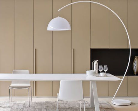 Design - Bogenleuchte mit einem Lampenschirm, Stehlampe, Lampenschirm Ø 52 cm