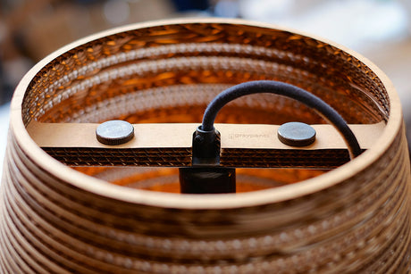 Design Stehleuchte, Lampenschirm aus recycelten Kartons, Stehlampe, Farbe beige/braun, Höhe 171 cm