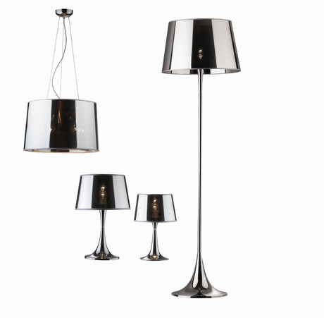 Stehleuchte Metall chrom Stoff Acrylfolie weiß