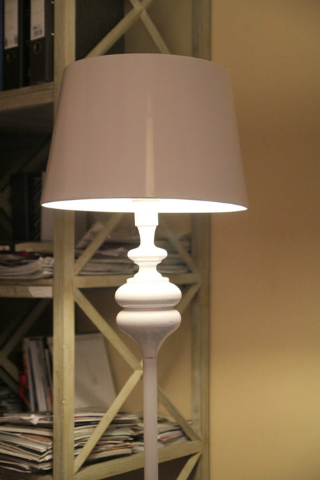 Moderne Stehleuchte aus Textil, Metall in weiß, modern