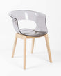 Design Stuhl, mit einer perfekten Kombination aus Kunststoff und klassischem Holz, die für einen hohen esthätischen Wert sorgen. Der Stuhl ist hervorragend für den Innenbereich geeignet. Den Sitz gibt es in drei verschiedenen Farben: transparent, schwarz transparent und weiß.