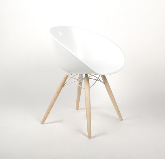 Design Stuhl mit Holzbeinen und Kunststoff Sitzschale