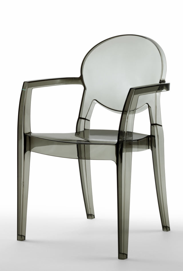 Design Stuhl modern klassisch mit Armlehne transparent grau