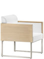Der Stuhl-Sessel ist seitlich mit massiv Sandwichplatte aus Eiche bestückt. Rückenlehne und Seiten von innen gepolstert. Gestell aus viereckigem Stahlrohr 20x20 mm.