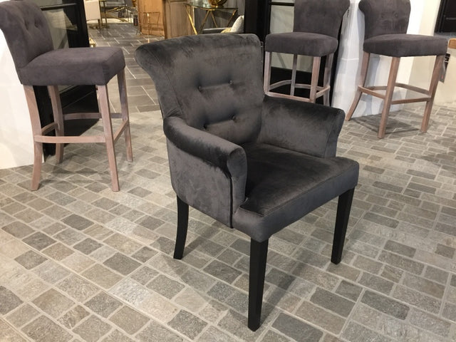 Gepolsterter Stuhl velours mit Armlehne, Stuhl gepolstert anthrazit