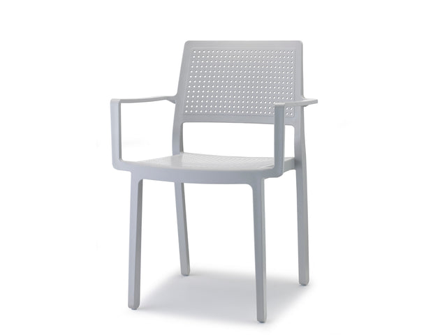 Stuhl mit Armlehne, Indoor, Outdoor, hellgrau, aus Kunststoff, Stapelbar