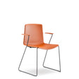 Stuhl orange verchromt, Kufenstuhl mit Armlehne orange stapelbar