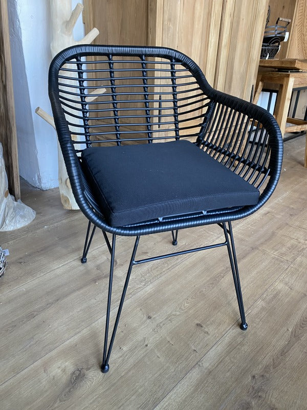 Stuhl schwarz, Stuhl Kunst-Rattan, Stuhl mit Armlehne schwarz