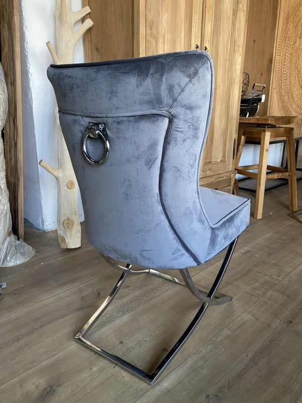 Stuhl Silber-Gestell, Stuhl mit Ring, Stuhl grau