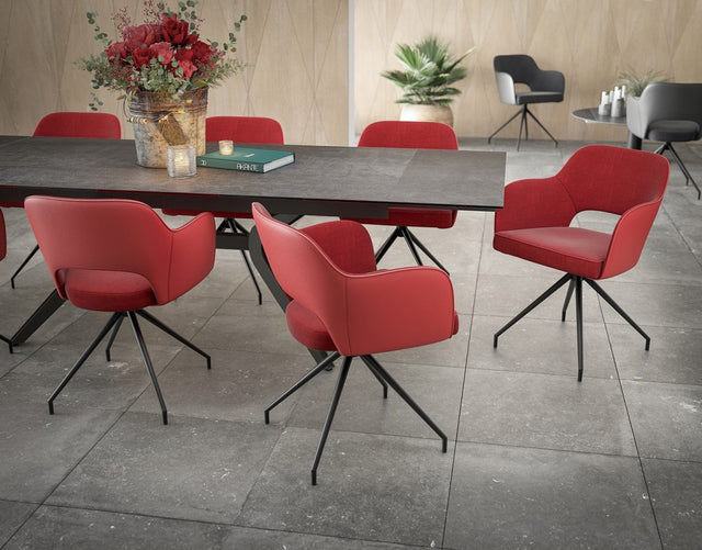 Stuhl rot drehbar, Stuhl Armlehne rot, Stuhl gepolstert rot