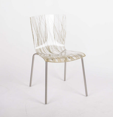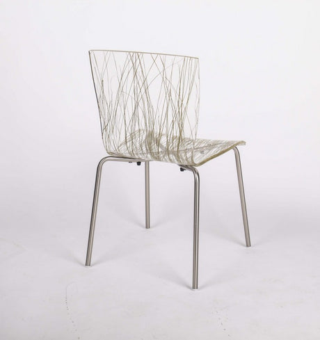 Design Stuhl transparent mit eingelassenem Schilfgras