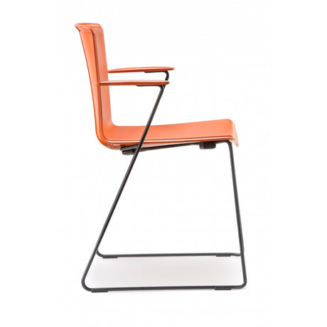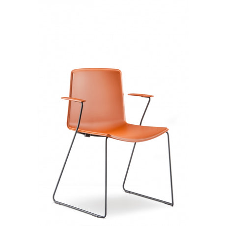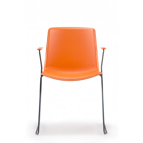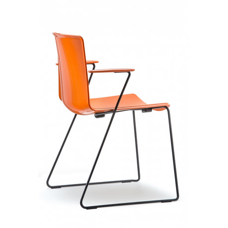 Stuhl orange verchromt, Kufenstuhl mit Armlehne orange stapelbar